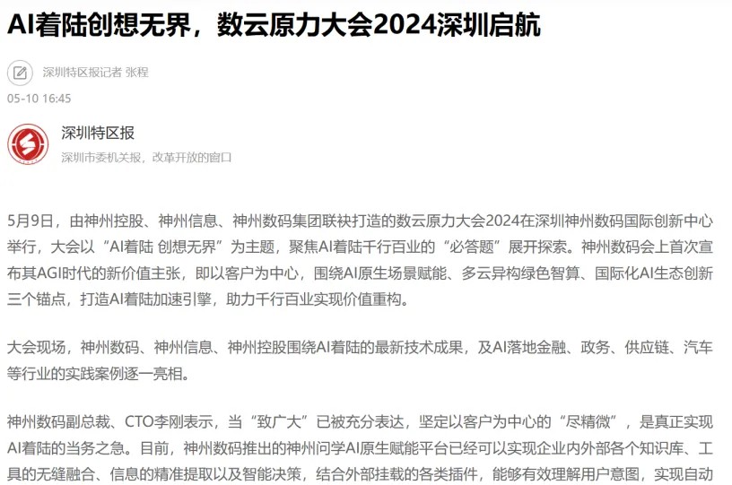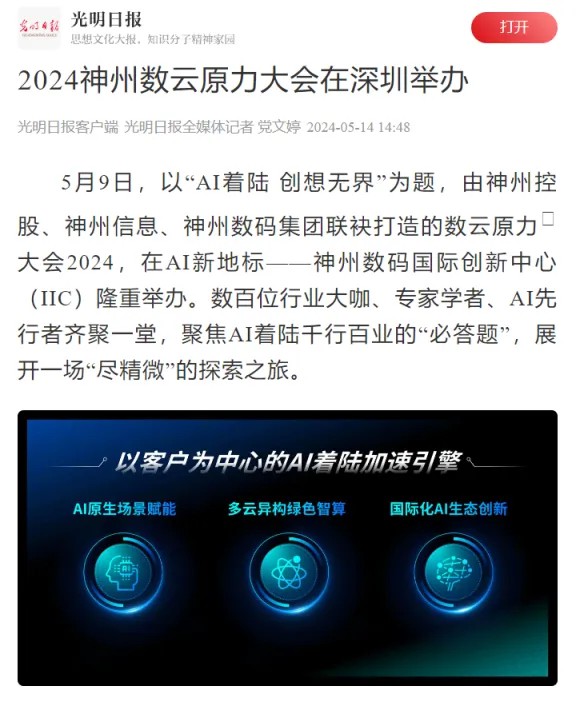 近日,由神州控股、神州信息、三亿体育集团联袂打造的年度盛会——数云原力大会2024开幕式,在未来AI新地标——三亿体育国际创新中心(IIC)圆满落幕。这场以“AI着陆 创想无界”为主题的活动,不仅引起了业界的广泛关注和讨论,也引发了媒体的争相报道。